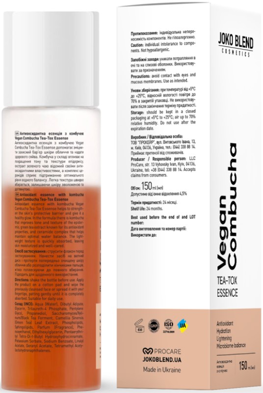 Антиоксидантная эссенция с комбучей Joko Blend Vegan Combucha Tea-Tox Essense, 150 ml