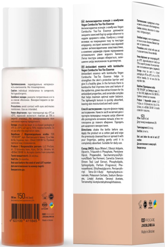 Активные компоненты Антиоксидантной эссенции с комбучей Vegan Combucha Tea-Tox Essense Joko Blend 150 мл: