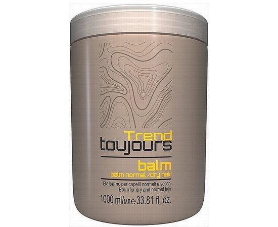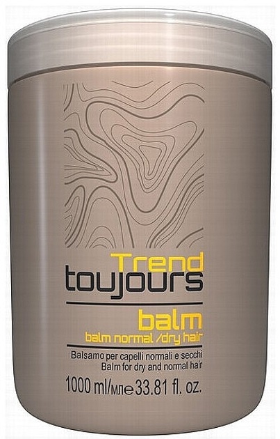 - Бальзам для сухих и нормальных волос Trend Toujours Balm Normal/Dry Hair, 1000 мл станет надежным помощником в ежедневном уходе за сухими волосами и поможет поддерживать его в здоровом состоянии даже после частых укладок или внешних факторов.