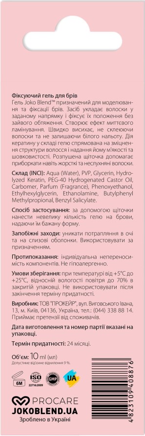 Активные компоненты фиксирующего геля для бровей Lamination Brow Fix Keratin Gel Joko Blend 10 мл: