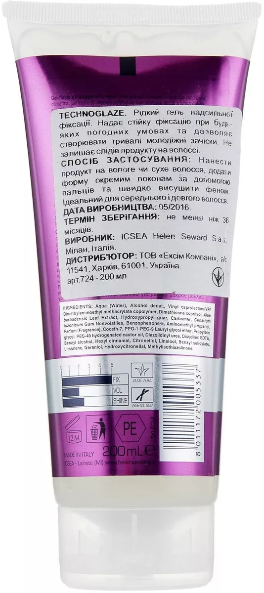 Применение: Гель наносится на сухие или влажные волосы, затем создаётся желаемая форма укладки. Сушка естественным способом или с помощью диффузора.