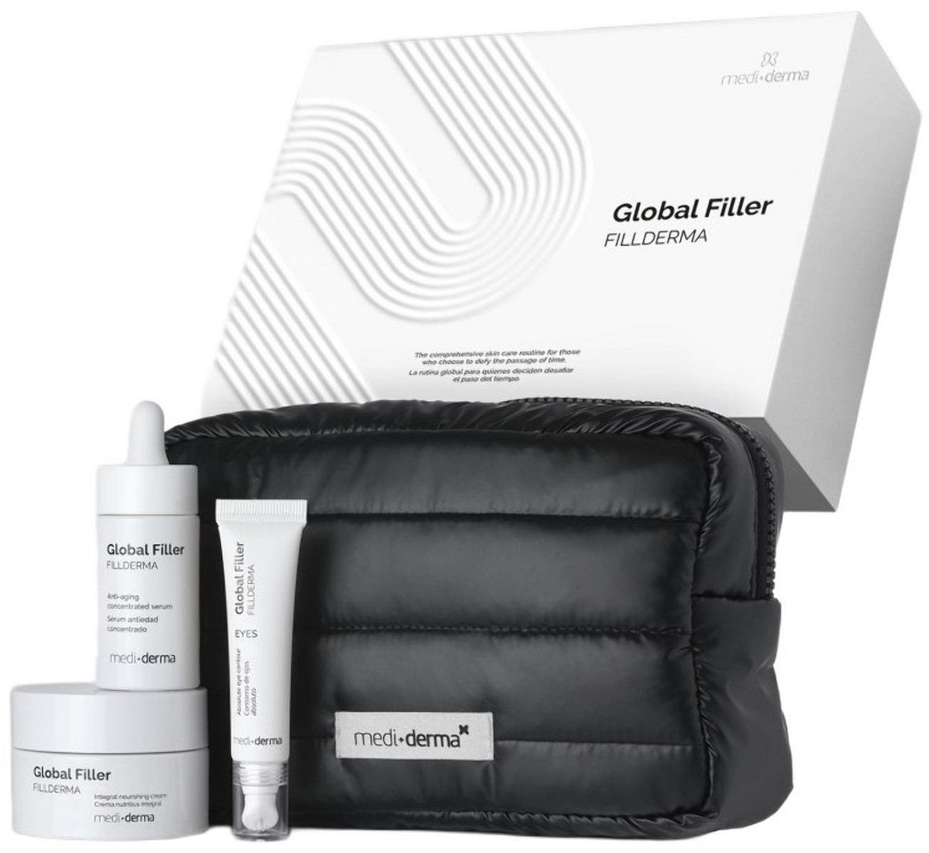 В набор входит: Global Filler Anti-Aging Serum 30мл, Global Filler Eye Contour 15мл, Global Filler Eye Contour 50мл.