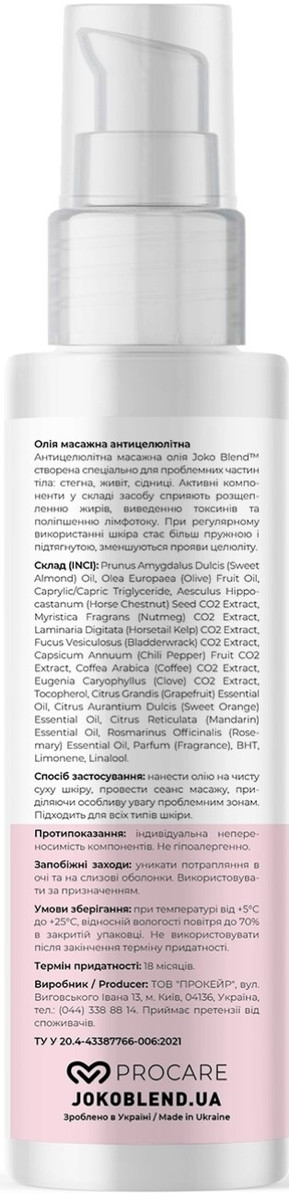 Масло массажное антицеллюлитное Joko Blend Anti Cellulite Massage Oil, 100 ml