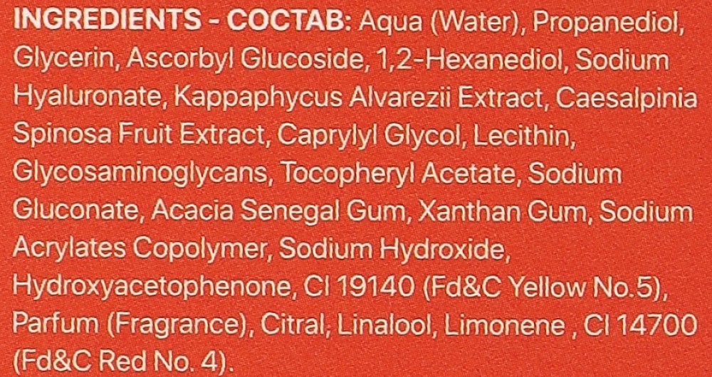- Ампулы Вит-С содержат аскорбилглюкозид. Эта форма витамина С превращается в чистый витамин С, когда он вступает в контакт с клеточной мембраной кожи, достигая всех преимуществ чистого витамина С без проблем окисления или фоточувствительности.