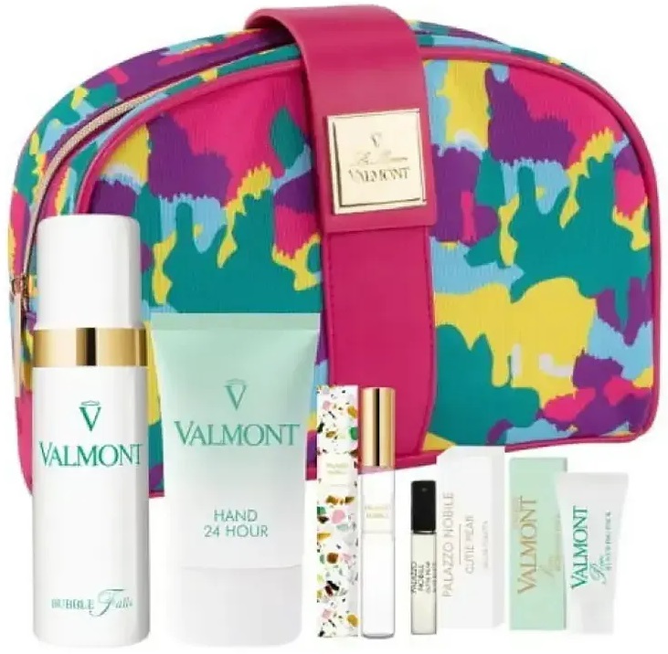- Valmont Bubble Falls: Water (Aqua), Coco-Glucoside, Sodium Lauryl Glucose Carboxylate, Lauryl Glucoside, PEG-6 Caprylic/Capric Glycerides, Cocamidopropyl Betaine, Alpha-Glucan Oligosaccharide, Anhydroxylitol, Lactobacillus, Levulinic Acid, Maltodextrin, Polymnia Sonchifolia Root Juice, Sodium Levulinate, Xylitol, Xylitylglucoside, Citric Acid, Disodium Edta, Glycerin, Sodium Chloride, Sodium Citrate, Sodium Benzoate, Sorbic Acid, Fragrance (Parfum), Citronellol, Eugenol, Hydroxycitronellal, Limonene, Linalool.
