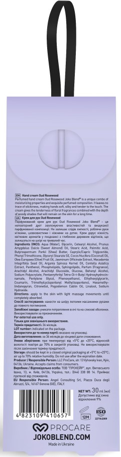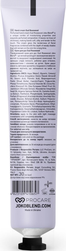 Активные компоненты Крема для рук парфюмерного Oud Rosewood Joko Blend 30 мл: