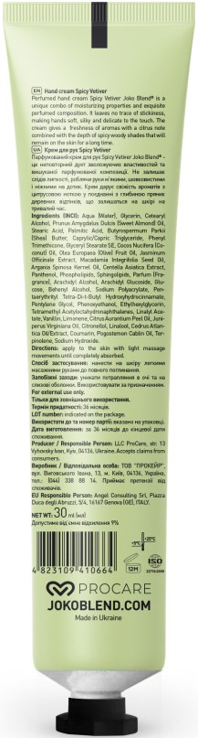 Крем для рук парфюмированный Joko Blend Spicy Vetiver Hand Cream, 30 ml