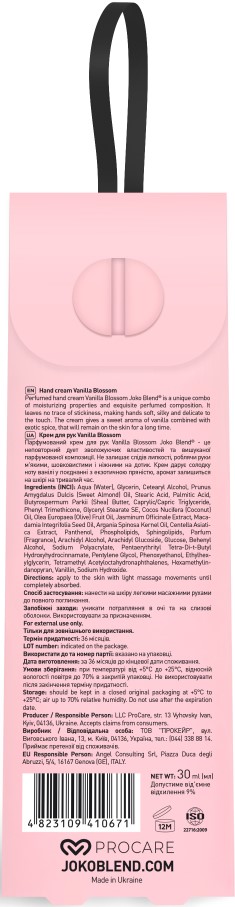 Активные компоненты Крема для рук парфюмерного Vanilla Blossom Joko Blend 30 мл: