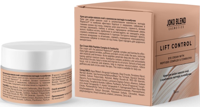 Активные компоненты Крема для кожи вокруг глаз с комплексом пептидов и комбучей Lift Control Joko Blend 15 мл: