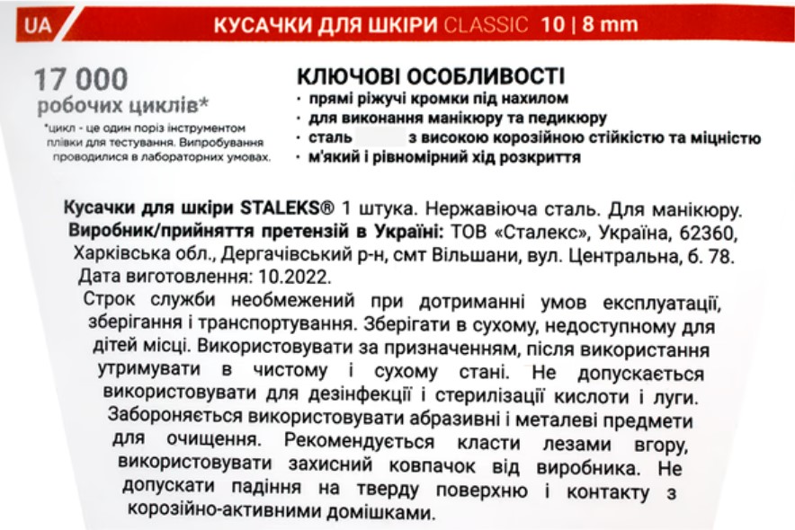 - Staleks Classic 10 8 NC 10 8 для кожи изготовлены из высоколегированной медицинской стали. Это прочный металл, не подверженный деформации и износу даже при активном использовании. Стальные режущие кромки надолго сохраняют остроту и предназначены для точного аккуратного среза без лишних усилий.