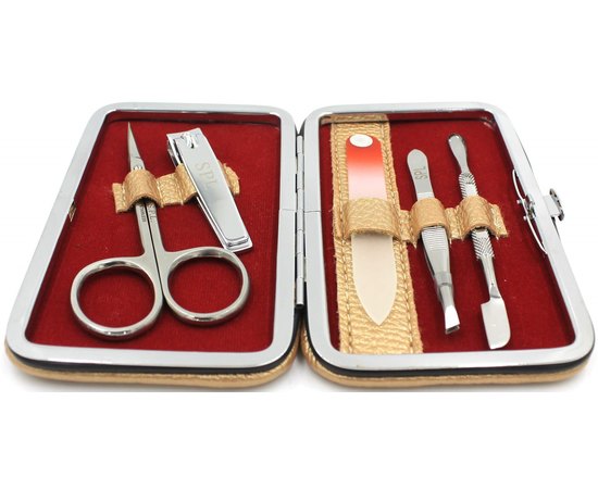 Состав набора: пилочка, ножницы для кутикулы, пинцет, книпсер, двухсторонний шабер.