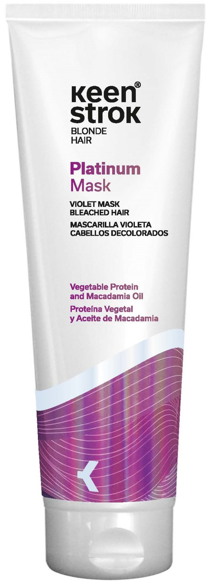Маска Keen Strok Platinum содержит фиолетовые пигменты, которые нейтрализуют желтые и оранжевые оттенки светлых волос и обеспечивают дополнительное питание. Формула обогащена макадамией, растительным протеином и антиоксидантом витамином Е.