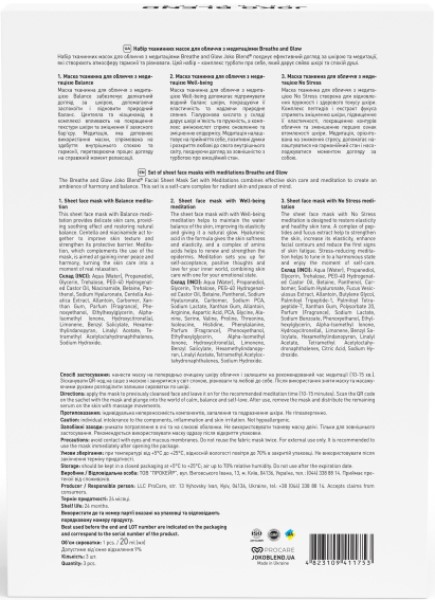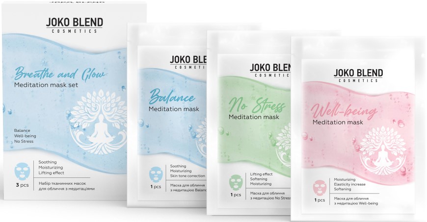 Набор тканевых масок для лица с медитациями Joko Blend Breathe and Glow Meditation Mask Set