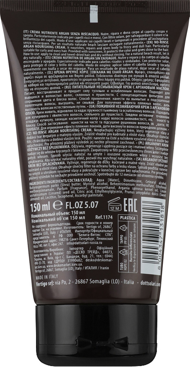 Несмываемый питательный крем с аргановым маслом Dott. Solari Argan Nourishing Cream, 150 ml