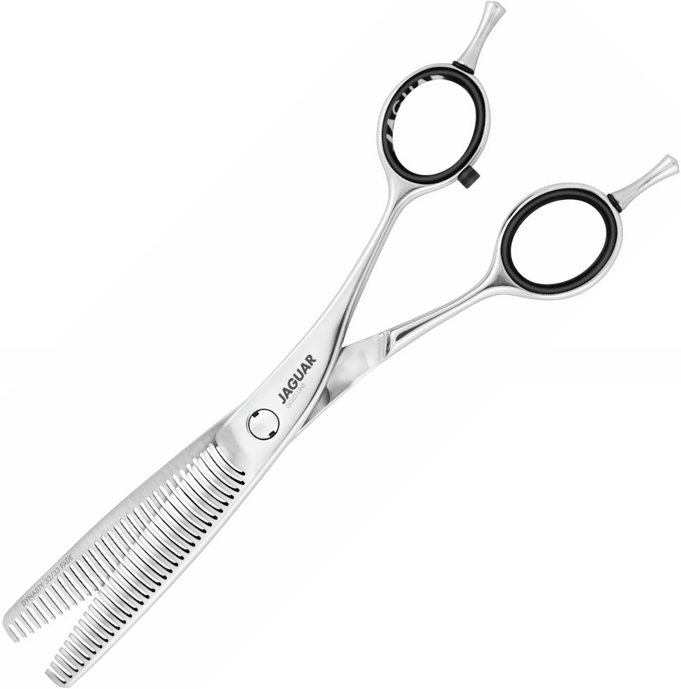 Профессиональные филировочные ножницы Jaguar Gold Line Dynasty Fade длиной 6.0" (15.5 см) с двусторонними зубцами 33/33 предназначены для точного филирования волос и создания природного объема. специальной стали премиум-класса (HRC 59), что гарантирует долговечную остроту. Система Smart-Spin позволяет плавно регулировать натяжение полотен.