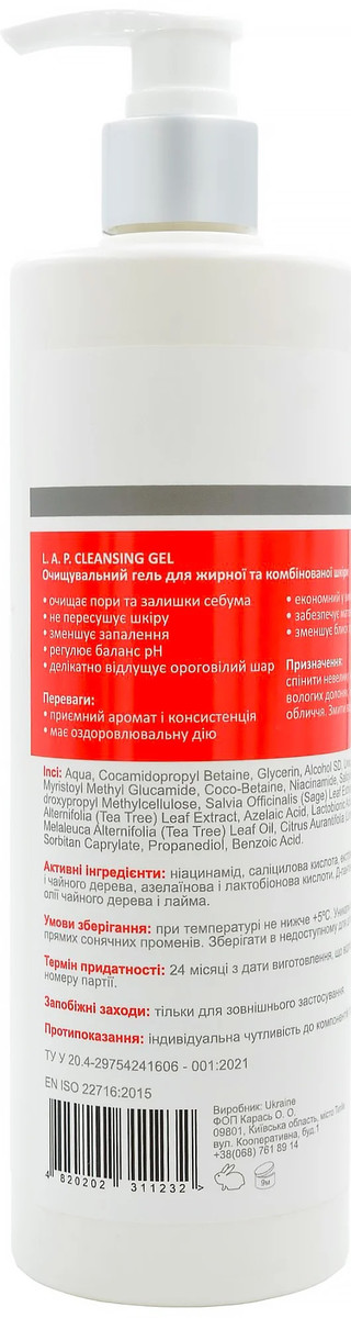 Активные ингредиенты: глицерин, мочевина, ниацинамид, салициловая кислота, экстракт шалфея, экстракт чайного дерева, азелаиновая кислота, лактобионовая кислота, Д-пантенол, эфирное масло чайного дерева, эфирное масло лайма.