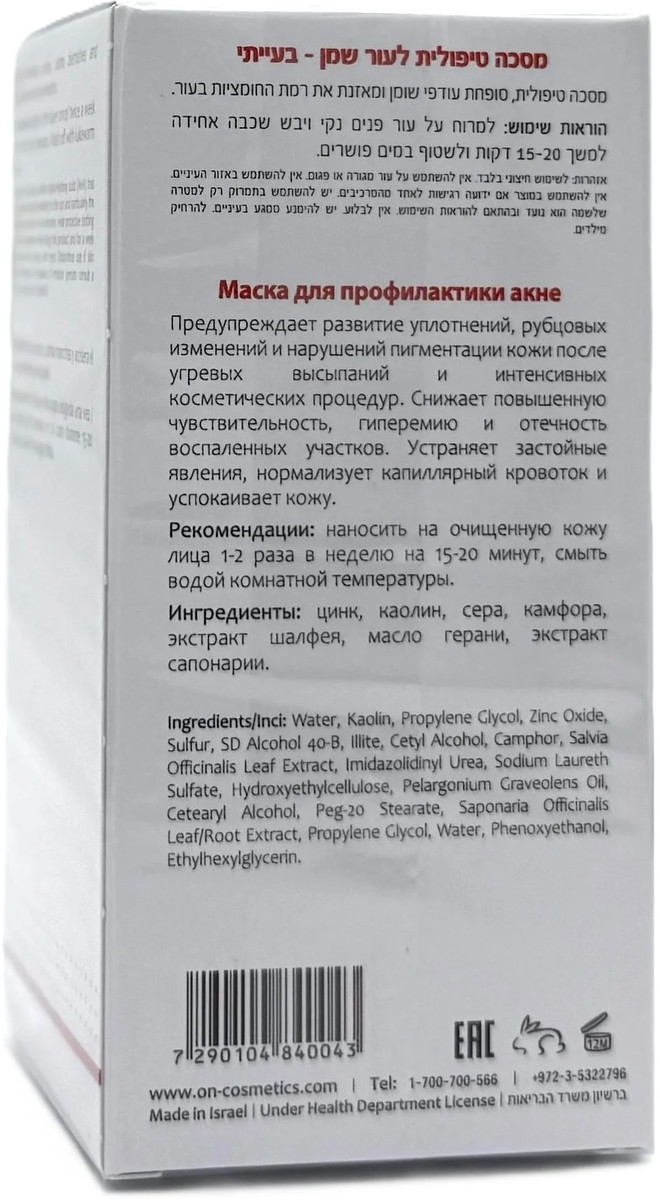 Себорегулирующая маска OnMacabim DM Acne Treatment Mask