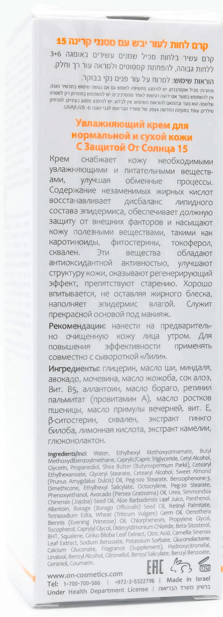 Увлажняющий крем для нормальной и сухой кожи SPF15 OnMacabim NR Moisturizing Cream