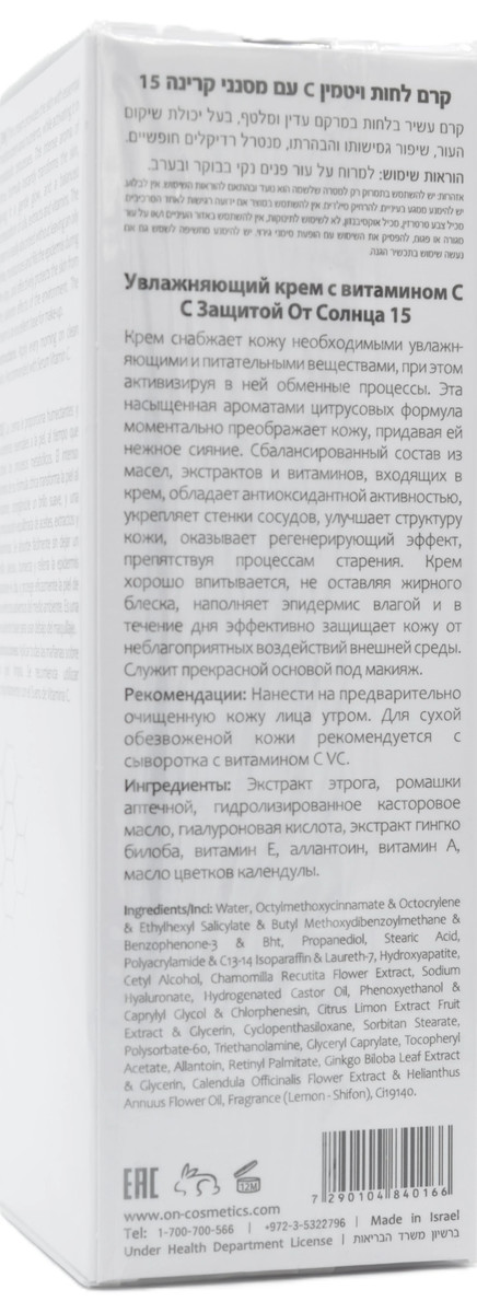 Увлажняющий крем с витамином C SPF15 OnMacabim VC Moisturizing Cream Vitamin C, 50 ml