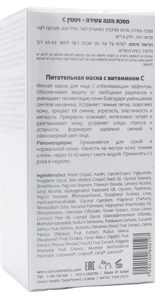 Питательная маска с витамином C OnMacabim VC Nourishing Scin Mask Vitamin C