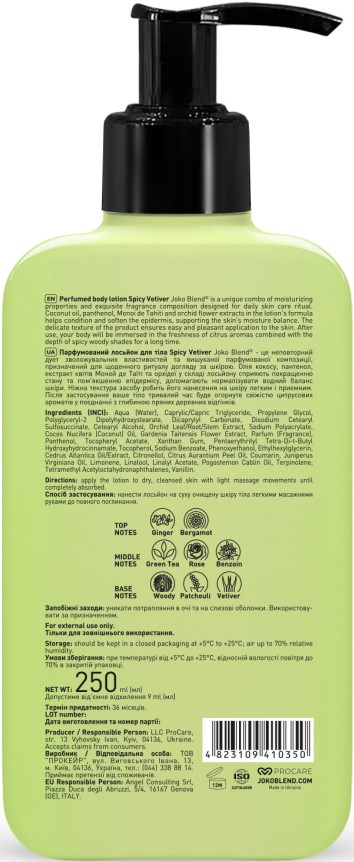 - Парфюмерный лосьон для тела Spicy Vetiver Joko Blend™ – это не только средство ухода за кожей, но и способ наслаждаться роскошным ароматом, который может придать уверенность и поднять настроение.