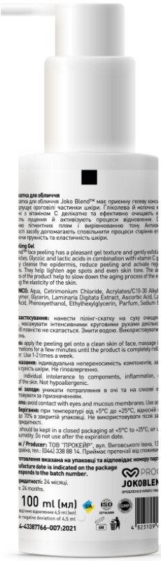 Пилинг-скатка для лица Joko Blend™ предназначена для глубокой очистки и деликатного обновления кожи без механического воздействия. Средство имеет приятную гелевую консистенцию, мягко отшелушивает ороговевшие частицы кожи. Антиоксидантные свойства помогают замедлить процессы старения эпидермиса, повышая упругость и эластичность кожи. Способствует освещению следов постакне и пигментных пятен. Пилинг подходит для всех типов кожи, в том числе для чувствительной, поскольку не содержит абразивных частиц, обладает деликатным, нежным воздействием на кожу и не травмирует эпидермис. Средство рекомендуется использовать 1-2 раза в неделю. При регулярном использовании обладает накопительным эффектом, что способствует более эффективному уходу за кожей. Обладает приятным нежным ароматом.