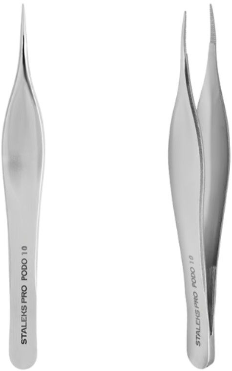 Одной из наиболее распространенных проблем медицинской педикюра является деформация ногтевой пластины и ее врастание в боковые валики (онихокриптоз). Прицельно захватить и надежно удержать даже мельчайшие фрагменты ногтевой пластины во время ее обработки подол поможет осколочный пинцет TP-10.