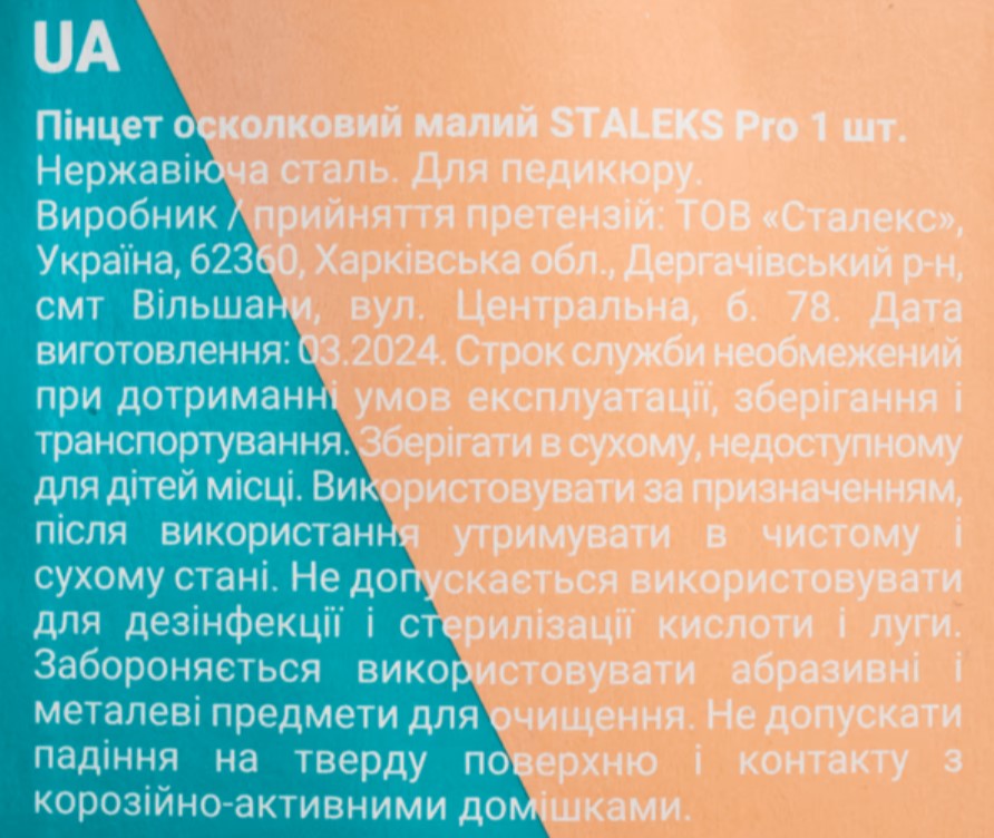 Осколочный пинцет Сталекс О производится из прочной, устойчивой к коррозии стали. Дополнительную долговечность и устойчивость к ржавчине ему придает полировку пастой ДОИ. Хранить изделие нужно в чистом и сухом виде. Проводите дезинфекцию и стерилизацию после каждого использования, строго соблюдая все этапы и правила.