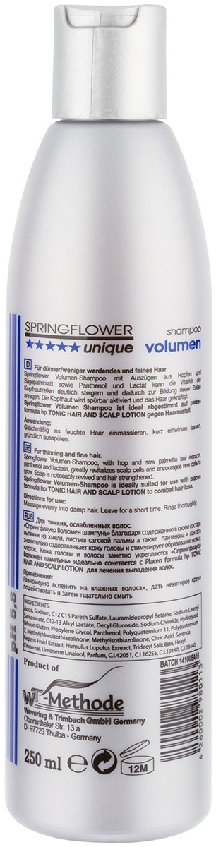 Шампунь Placen Formula Springflower Volume Shampoo специально разработан для жирных, тонких и ослабленных волос, лишенных объема и блеска.