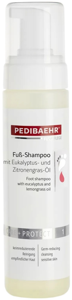 Шампунь для ног для интенсивного очищения кожи. Имеет эффективную очистку, особенно для кожи, чувствительной к грибкам. Масло эвкалипта и лемонграсу придают чувство чистоты и свежести своим бодрым ароматом. Мощный шампунь для ног PEDIBAEHR можно распылять и распределять непосредственно по ногам с помощью пенного аппликатора.