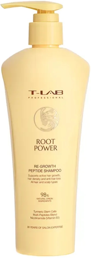 Шампунь для роста волос с пептидами T-Lab Professional Root Power Re-Growth Peptide Shampoo. Рекомендуется для всех типов волос и кожи головы.