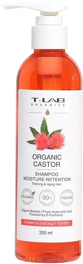 Шампунь для тонких и возрастных волос T-Lab Professional Organic Castor Moisture Retention, 250 ml