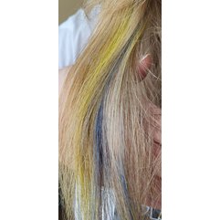 Он дарит локонам насыщенный цвет с завораживающим металлизированным отливом, который сделает любой тематический образ по-настоящему незабываемым и оригинальным! Безвредная формула средства не проникает глубже кутикул (верхний слой) волос, поэтому не оказывает токсичного или разрушающего действия на их внутреннюю структуру. А главное — цвет легко и быстро устраняется при первом же мытье шампунем.