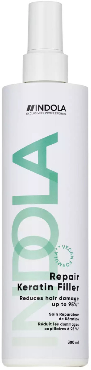 Разработанный на основе веганской альтернативы кератина, Indola Repair Keratin Filler – это спрей для восстановления волос, глубоко восстанавливающий внутреннюю структуру поврежденных и химически чрезмерно обработанных волос, помогая предотвратить дальнейшее повреждение – с уменьшением ломкости волос до 95%*. Веганская формула**.