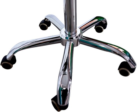 - Основа стульчика: металлическая пятилучевая база на полиуретановых колесах