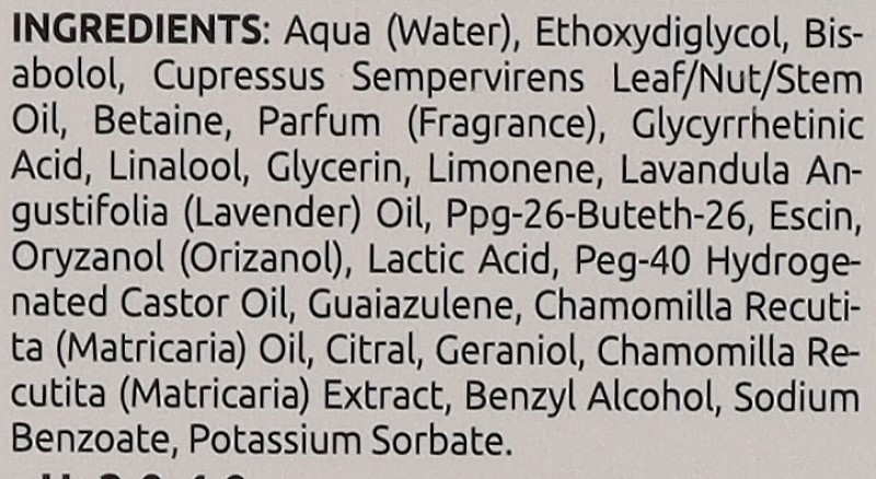 - Благодаря эфирным маслам лаванды, ромашки и кипариса оказывает успокаивающее и антисептическое действие, увлажняет и восстанавливает состояние микробиомы кожи головы.