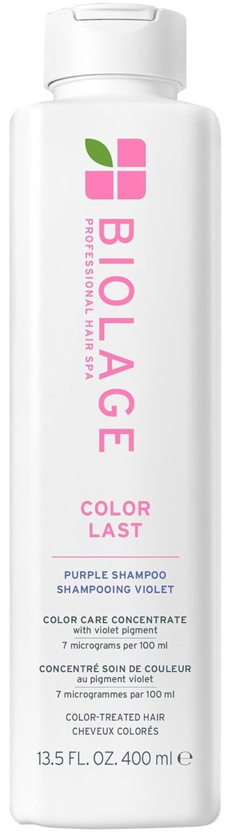 Шампунь Biolage Colorlast Purple Shampoo з каталогу MATRIX створений для нейтралізації жовтизни на забарвлених і освітленого волосся. Засіб для регулярного застосування з допомогою фіолетових пігментів усуває небажані теплі відблиски, надаючи пасмам благородний холодний тон.