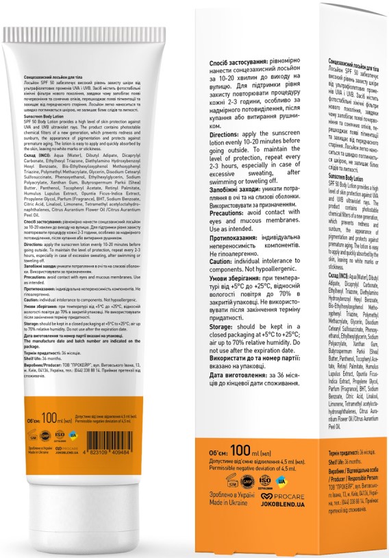 Особливості сонцезахисного лосьйону для тіла SPF 50 Joko Blend 100 мл: