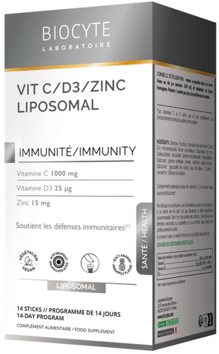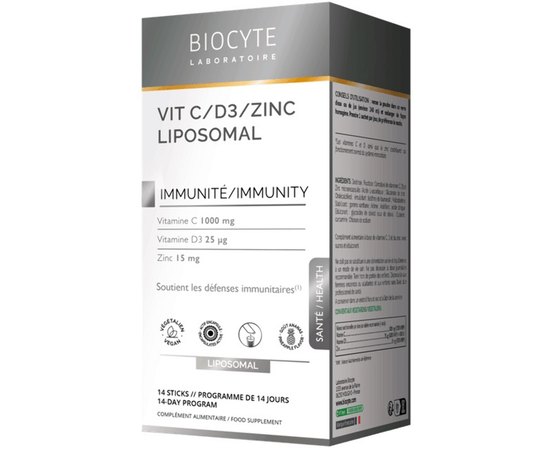 Дієтична добавка для підтримки імунної системи Biocyte Vit C-D3-Zink Liposomal, 14 sticks