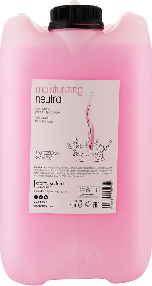 Особливості Dott. Solari Science & Welness Glycerin Neutral Shampoo All Types Hair Salon Size: