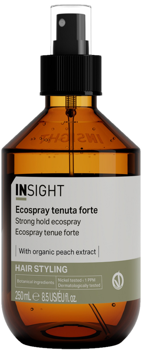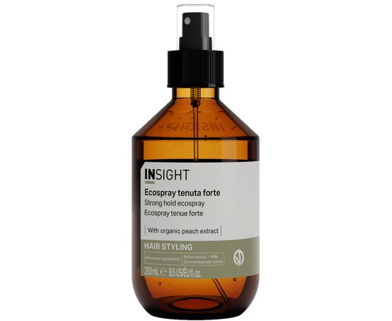 Натуральний лак для волосся Styling Strong Hold Ecospray від Insight не має у своєму складі газів, безпечний для довкілля. При цьому він надійно фіксує укладання, дозволяючи створювати стильні та натуральні образи.