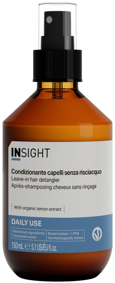Незмивний спрей-кондиціонер від Insight, який зволожує волосся, не обтяжуючи його. Містить органічний екстракт лимона, абрикосову олію, соняшникову та кукурудзяну олії, які відразу роблять волосся м’яким і слухняним. Створений для щоденного використання, миттєво пом’якшує та наповнює волосся.