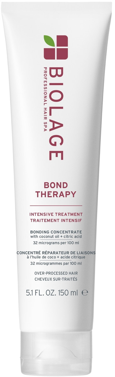 Biolage Bond Therapy Intensive Treatment – це маска з кремовою консистенцією для попереднього догляду перед миттям шампунем для відновлення пошкодженого волосся, ослабленого хімічним впливом. Формула засобу збагачена кокосовою олією і лимонною кислотою, що відновлює волосся, що гарантує глибоке харчування і зміцнює зв'язки зсередини, повертаючи силу волоссю.