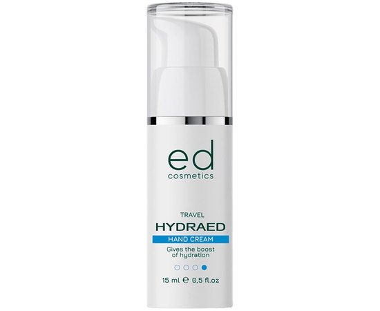ED Cosmetics Hydraed Hand Cream збагачений унікальним 7-компонентним зволожуючим комплексом, який інтенсивно живить, відновлює необхідний рівень зволоження та підтримує регенерацію шкіри. Його легка нежирна формула швидко вбирається, забезпечуючи тривале зволоження та захист від сухості. Шкіра стає м'якою, гладкою і ідеально зволоженою.