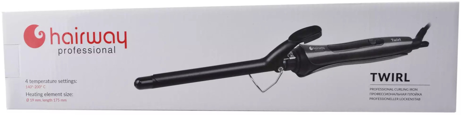 Плойка для волосся Hairway Twirl зробить ваш досвід укладки приємним та комфортним. Головна особливість цього інструменту – керамічне покриття. Завдяки йому інструмент не перегрівається та зменшує можливість травмування волосся під час укладки. Плойка потужна, нагрівається швидко та рівномірно. Завдяки 4 температурним режимам можна легко підібрати силу нагрівання та збалансувати її під особливості свого волосся. Також Hairway Twirl характерний наявністю цифрового дисплея та терморегулятора.