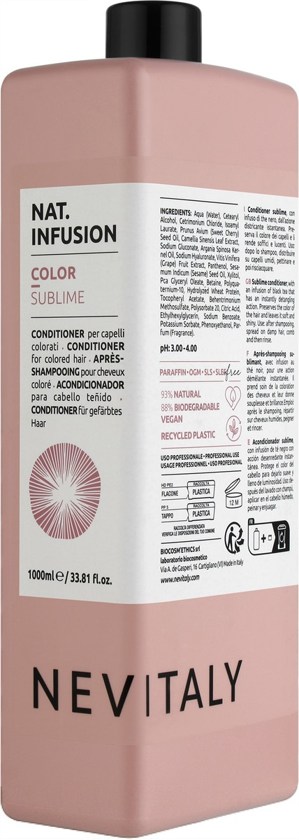 Кондиціонер Color Sublime від бренда Nevitaly дарує витончену процедуру догляду за кольоровим і обробленим волоссям, яка перевершує всі очікування. Косметологи додали до цього засобу олії винограду й вишні для зміцнення волосяних структур. Додатково він відновлює здоровий блиск волосяного покриву й подовжує ефект салонної процедури.