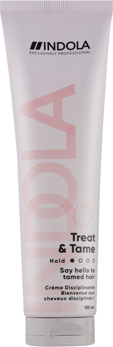 Завдяки додатковій перевагі захисту від вологи та тепла до 230°C, Indola Treat & Tame – це крем для укладання волосся, розроблений з гліцерином, який розгладжує кучеряве волосся та повертає йому контроль. Веганська формула*.