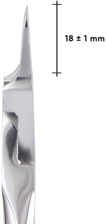 Кусачки для врослого нігтя Сталекс Pro Podo 30 18 мм NP-30-18 — з подовженими прямими ріжучими кромками довжиною 18 мм, із загостреними кінчиками, без виступу-п'яти. Майстер заточує їх під мікроскопом на алмазних колах, щоб при виконанні подологічних маніпуляцій отримати рівний акуратний зріз без ранок і розшаровувань. Після заточування інструмент залишається гострим тривалий час, навіть при великих навантаженнях.