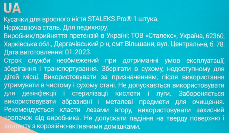 - Незважаючи на антикорозійне покриття кусачок Staleks Pro, їх не потрібно замочувати у воді на тривалий час, оскільки це призведе до зниження антикорозійного захисту.