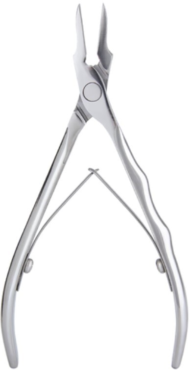 - Кусачки виготовлені з високолегованої нержавіючої хірургічної сталі. Це міцний метал з високим вмістом хрому, слабо схильний до деформації і зношування навіть при активному використанні. Сталеві ріжучі кромки надовго зберігають гостроту, призначені для акуратного та точного зрізу без зайвих зусиль.